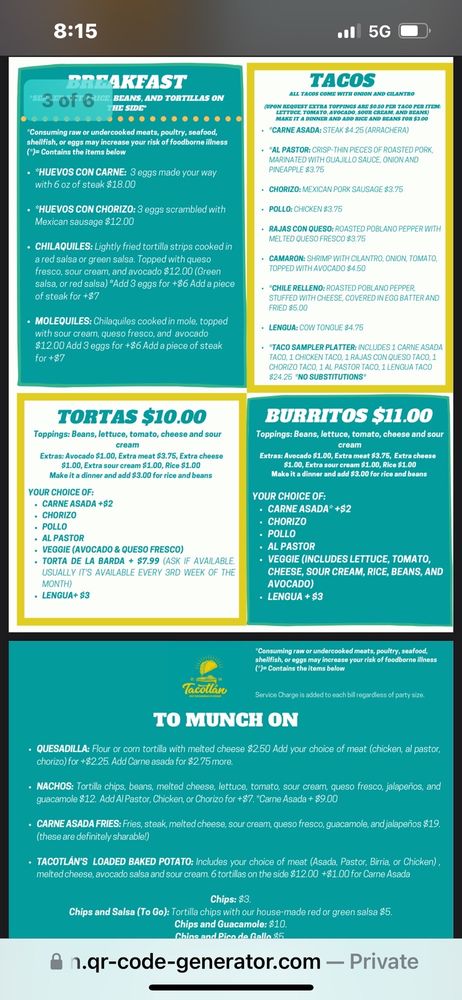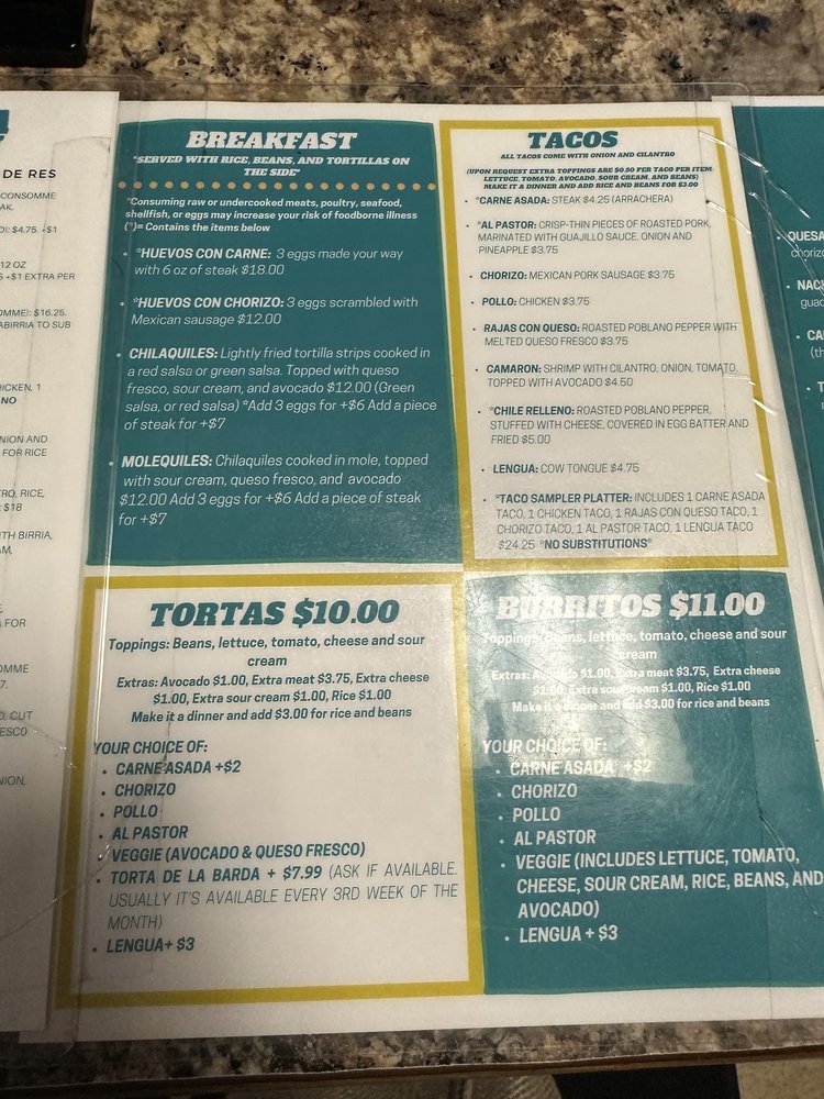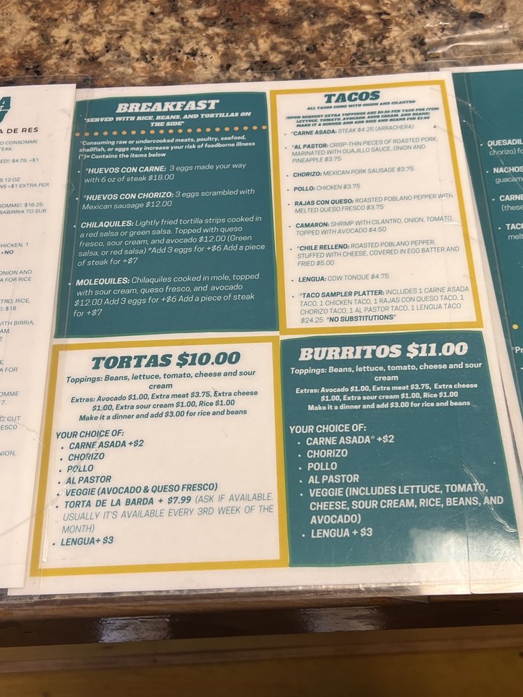 Includes 1 carne asada taco, 1 chicken taco, 1 rajas con queso taco, 1 chorizo taco, 1 al pastor taco, 1 lengua taco.