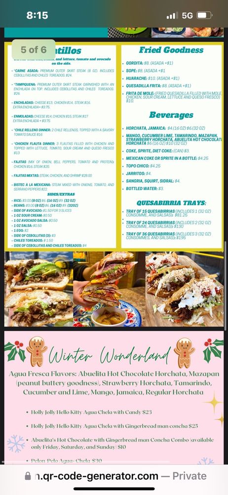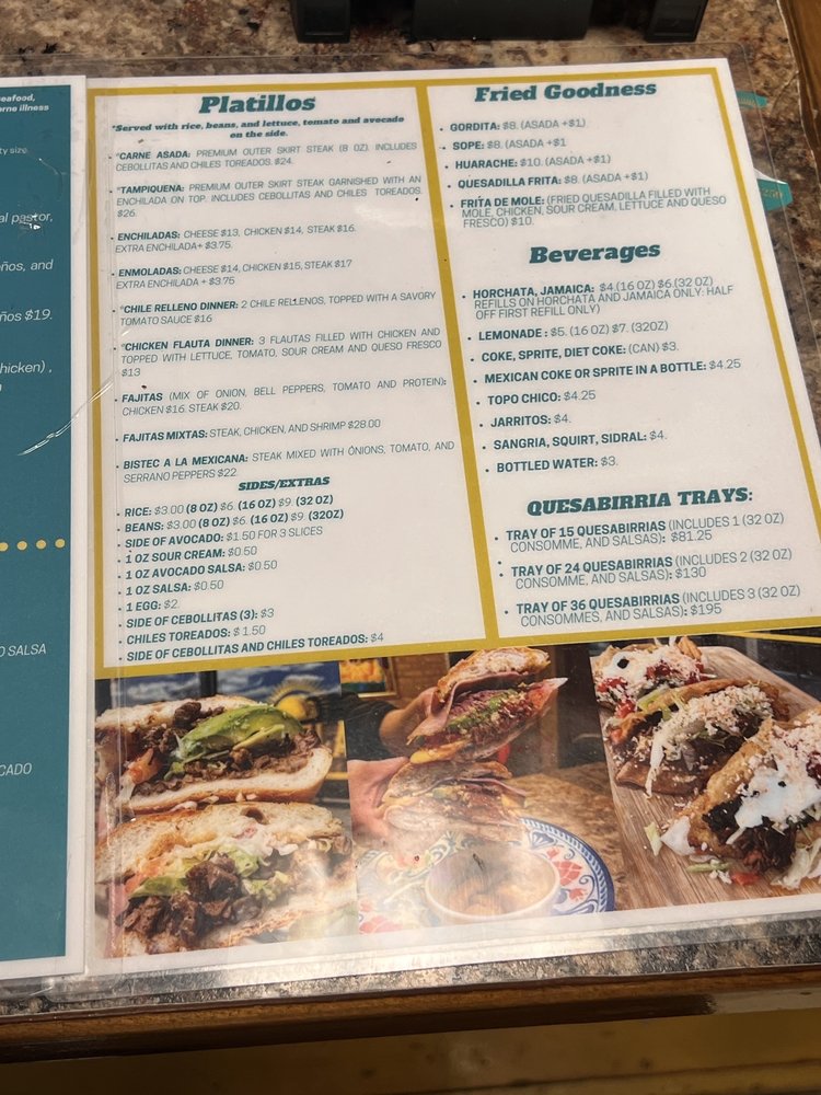 Masa filled with your choice of meat and topped with lettuce, tomato, sour cream and queso fresco.