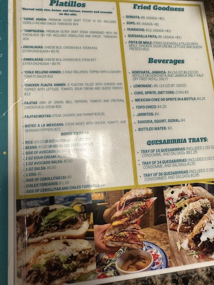 Bolillo bread with your choice of meat and topped with lettuce, tomato, cheese, beans, and sour cream.